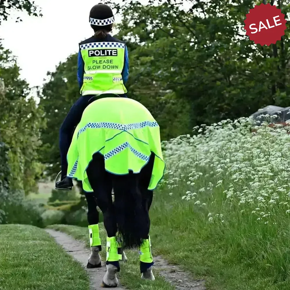 Equisafety Polite Hi Vis Summer Exercise Sheet is fully washable on a 30 degree wash, hang to dry.