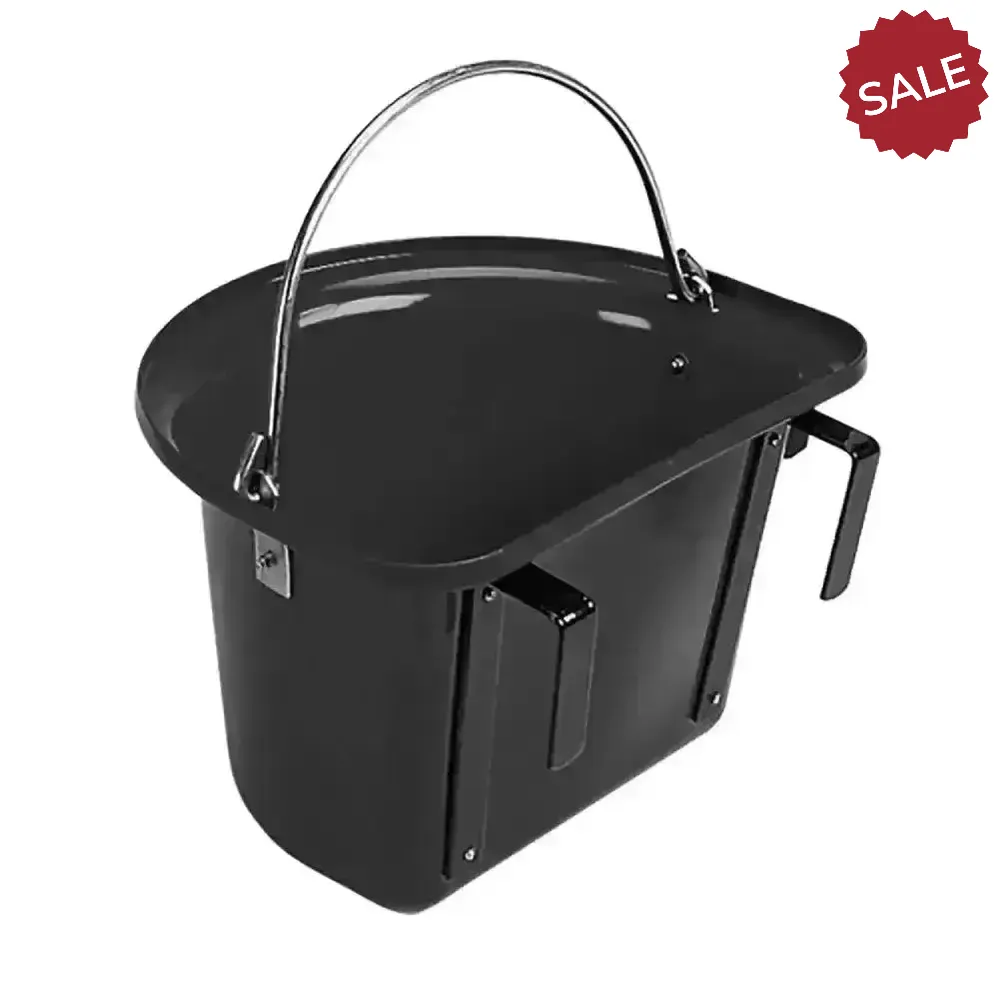 The obvious place for a grooming bucket is hanging on the stable door at a convenient height for use and not being knocked over! Can also double up as a portable manger. Height 26cm, width 39cm and depth 35cm.